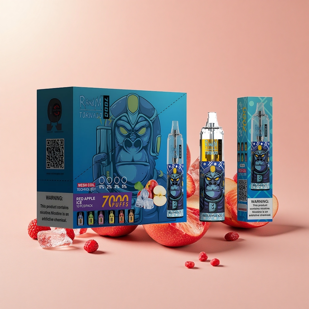 RandM Fumot Tornado 7000 задухване Червена ябъка лед 14ML Mesh Coil